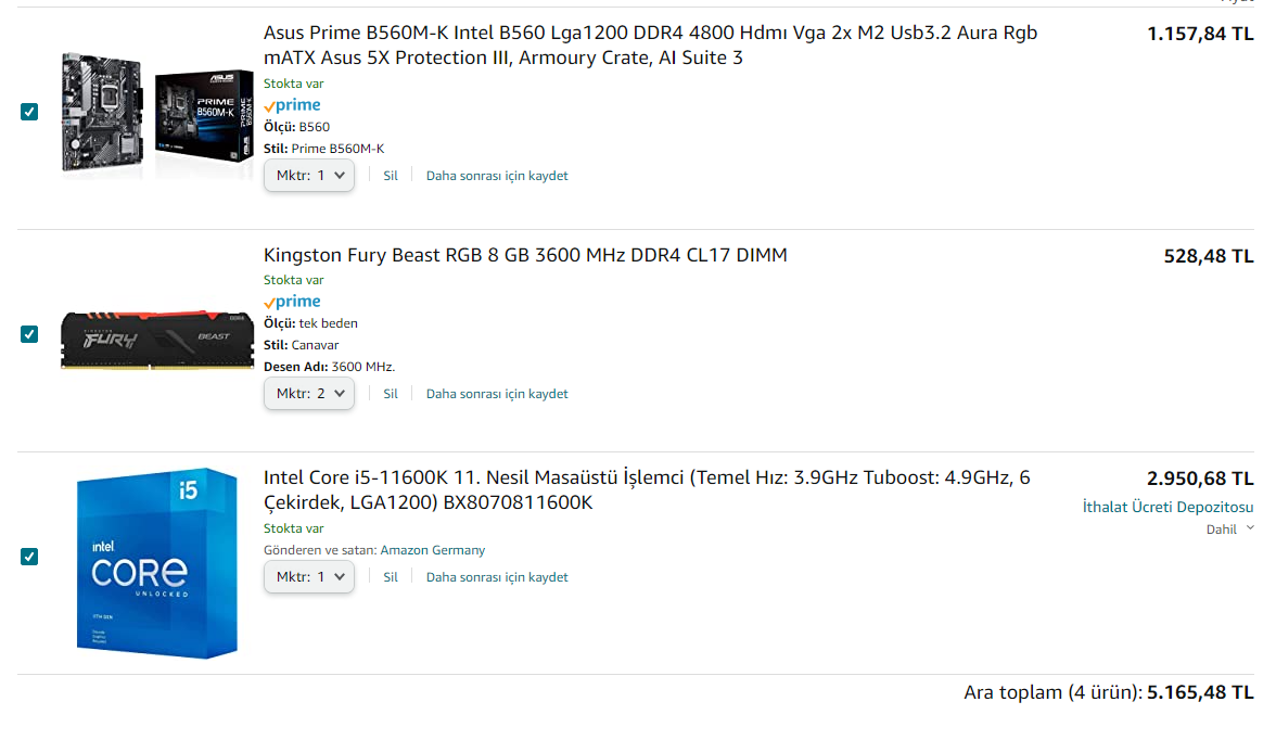 Merhaba arkadaşlar, 11600K sistemi Amazon'dan toplayabiliyorum fiyatı ise aşağıdaki fotoğrafta işlemci fanı yok. Ekleyeceğim öneriyle, ancak Intel işlemcilerde overclock B560 anakartlarla yapılamıyormuş. Bunun herhangi bir yolu var mı veya Ryzen sistem mi toplamalıyım? Ryzen sistem ise 6500 civara denk geliyor.