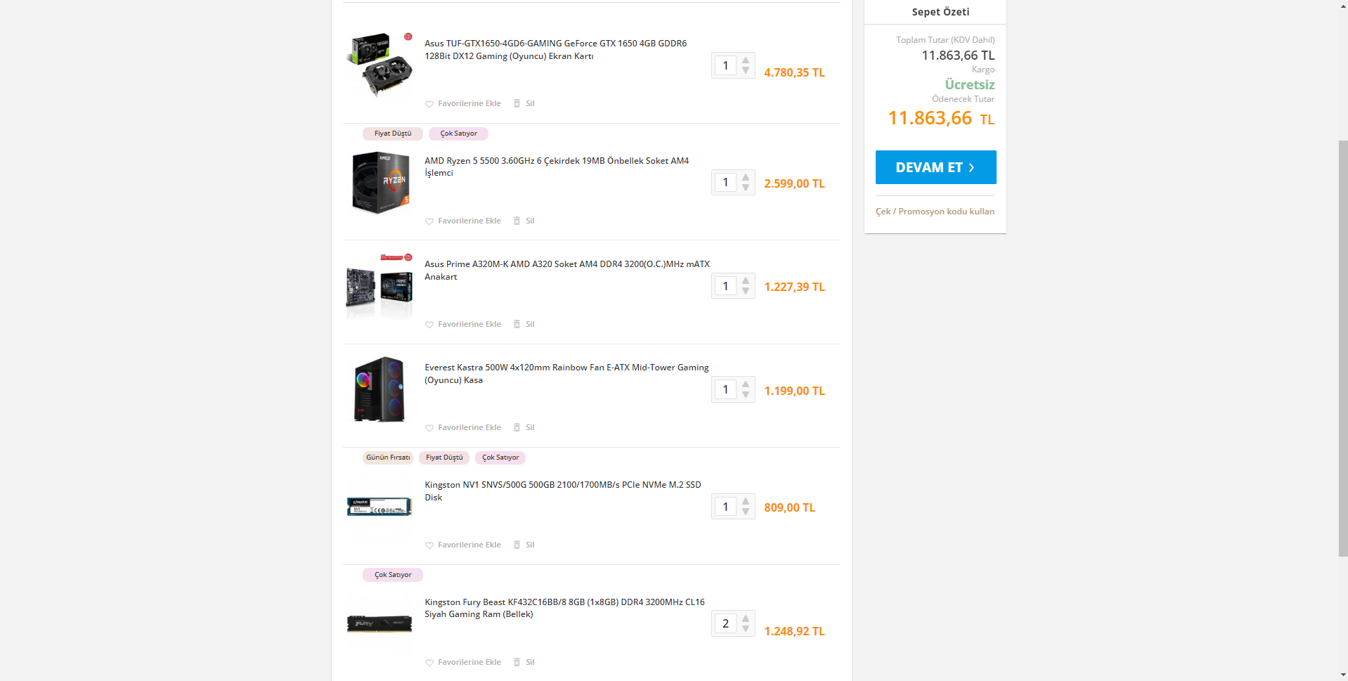 Senin ekran kartı ile RTX 2060 arasında 150TL fark var (benim paylaştığım). Ayrıca i3 12.nesil 3.30GHz işlemci ile Ryzen 5 5500K arasındaki fark bariz. Hadi hatrınız geçsin RTX 2060'ı RX 6600 ile değişelim çok daha iyi olmasına rağmen yine çok az bir fiyat farkına benim önerdiğim parçalar çok daha iyi. Bir bak istersen.