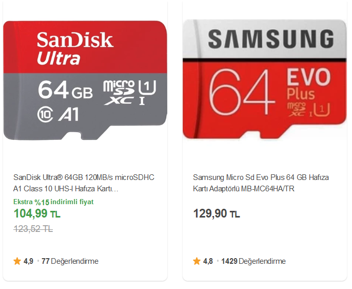 Merhabalar. Telefonumdaki 16 GB SD kart artık yetmediği için SD kart almaya karar verdim. Bu aşağıdaki 2 model arasında kaldım. Sizce hangisi daha performanslı ve uzun ömürlüdür? Herhangi bir kronik sorunları var mıdır? Bir de 64'lük yeter mi? 128'lik alınır mı? 128'lik almayı düşünmüyor değilim.