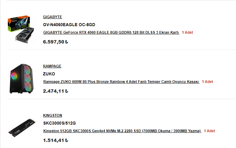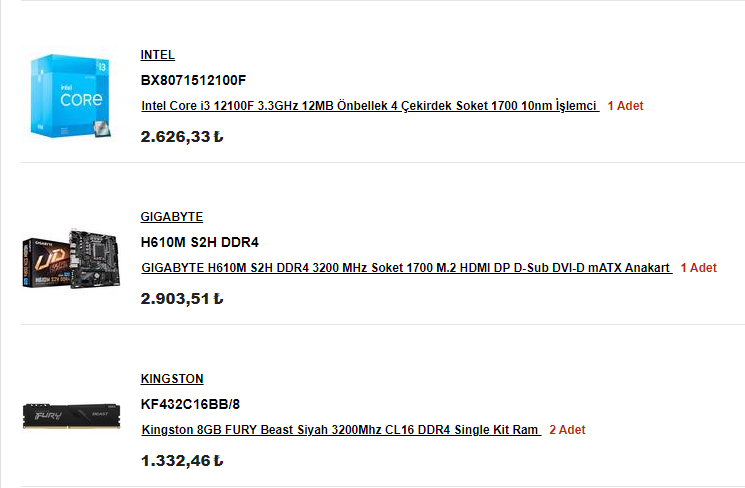 Şeklinde özelleştirip 17.448, 66 TL'ye aldım. Açıkçası çok ucuz bulduğum için çok incelemedim ama sonradan anakartın OC'ye izin vermediğini, işlemcinin %20'ye kadar darboğaz yapabileceğini öğrendim. Çok da mühim değil haftada 4-5 saat World of Tanks'ya da Valorant oynar belki arada yayın açarım.