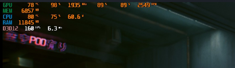 Zotac RTX 3070 ve 12400F Dark 120mm tek fan sogutucu kullanıyorum. Ve Cyberpunk'ta degerler asagı yukarı gordugunuz gibi. Bu değerler normal mi?