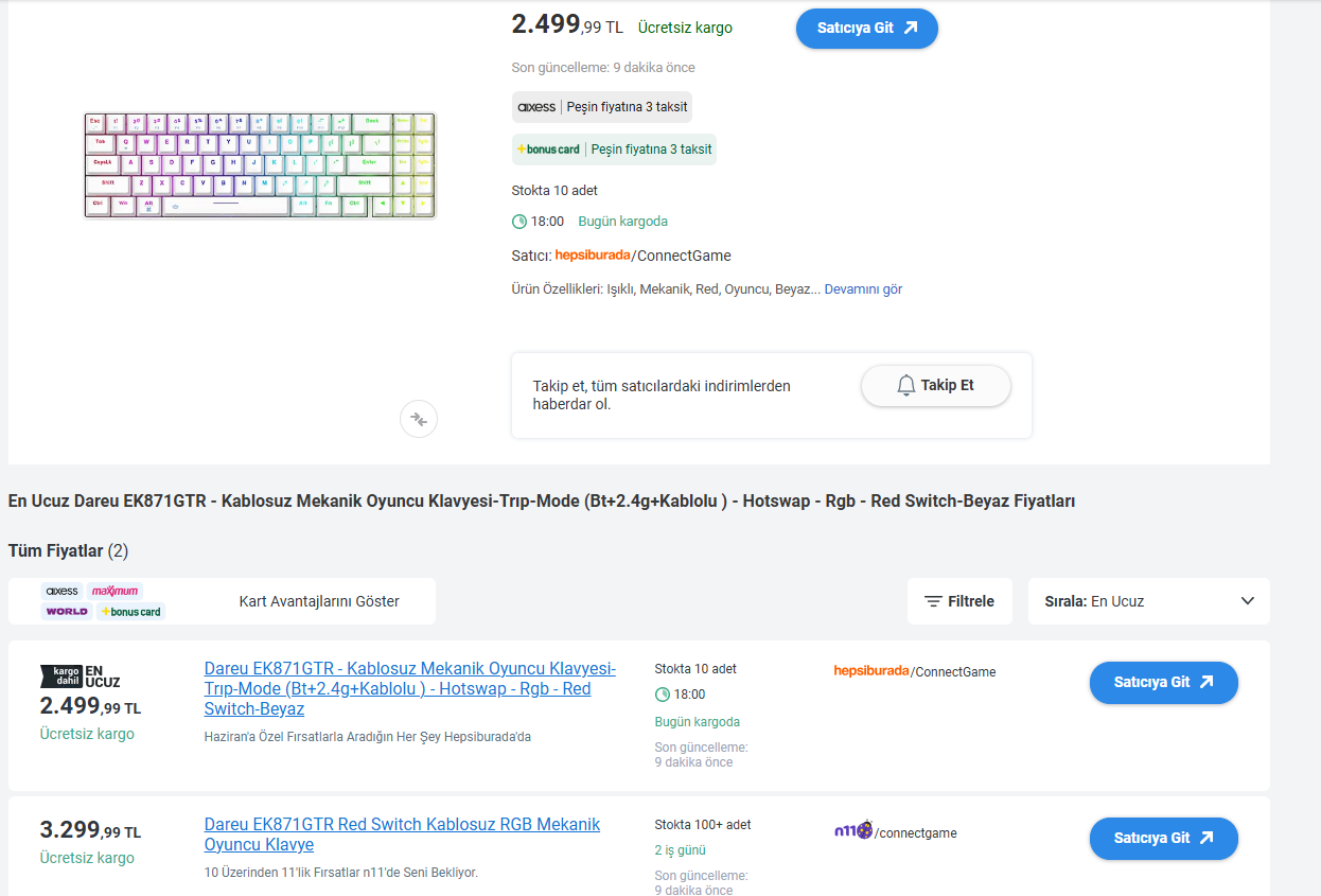 hocam evet bazen site muhattap olmuyolar ürünleriyle ama diğerlerinden daha ucuz ve iyi olmasının sebebi karne indirimleri stoklar bittiğinde indirimde biticek normalde 1800 2000lik bir klavye ve bu bütçenin en iyisi
