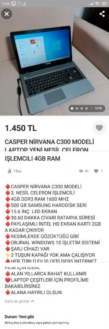 EBA, Zoom ve Adobe connect programlarıyla birlikte Office programlarını kullanmak amaçlı bir laptop almak istedim. Letgo üzerinden bu PC'yi buldum. Sizce alınır mı ve beklentiyi karşılayabilir mi?