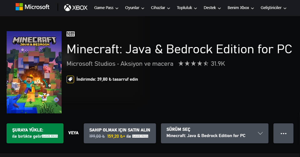 Merhaba, zam yemeden Minecraft almayı düşünüyorum. İndirime girmesi için 30₺'ye Xbox Game Pass PC ile alacağım ve 160₺'ye düşecek + Tosla ile alacağım için %20 cashback verecek ve oyunun fiyatı 128₺'ye düşecek. Sizce mantıklı mı?