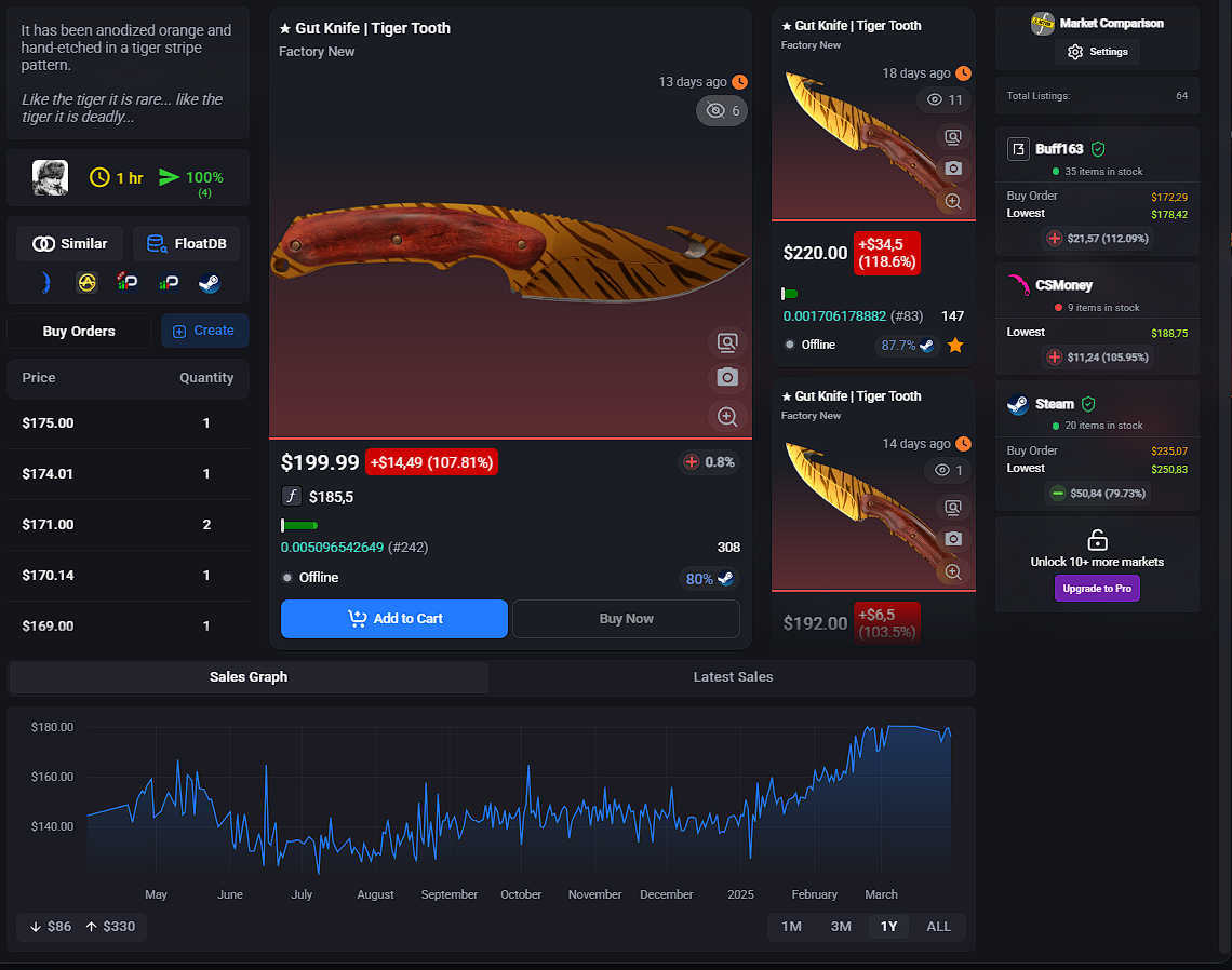 185-190 civarı CSFloat skin sitesinden alabilirsiniz baktığım kadarıyla 1 yıl içerisinde 30-40 dolar civarı kaar getirisi olmuş 180-190 arası kolaylıkla satılıyor takas geçmişine bakınca tabii ki (ytd) size daha kaarlı avantaj oluşturacak skin ararsanız bloodsport MW AK-47 önerebilirim 168 dolar civarı bende yeni aldım bayağı uzun bir süre araştırma sonucu yıllık getirisi 70-80 dolar bandajında olduğundan ilgimi çekti tabii ki sadece bıçak ilginizi çekiyorsa attığım bıçak bu fiyat bandajlarında güzel falcihion 20-18 dolar arası getiri olmuş genele bakış Talon knifeler yıl içerisinde 100 dolar civarı artmış araştırıp bir tane alabilirsiniz biraz karışık anlattım fakat önerebileceğim skinleri atmak istedim rastgele şekilde tabii ki garanti yatırım olarak bakmayınız fakat kolaylıkla satabileceğiniz bunlar var.