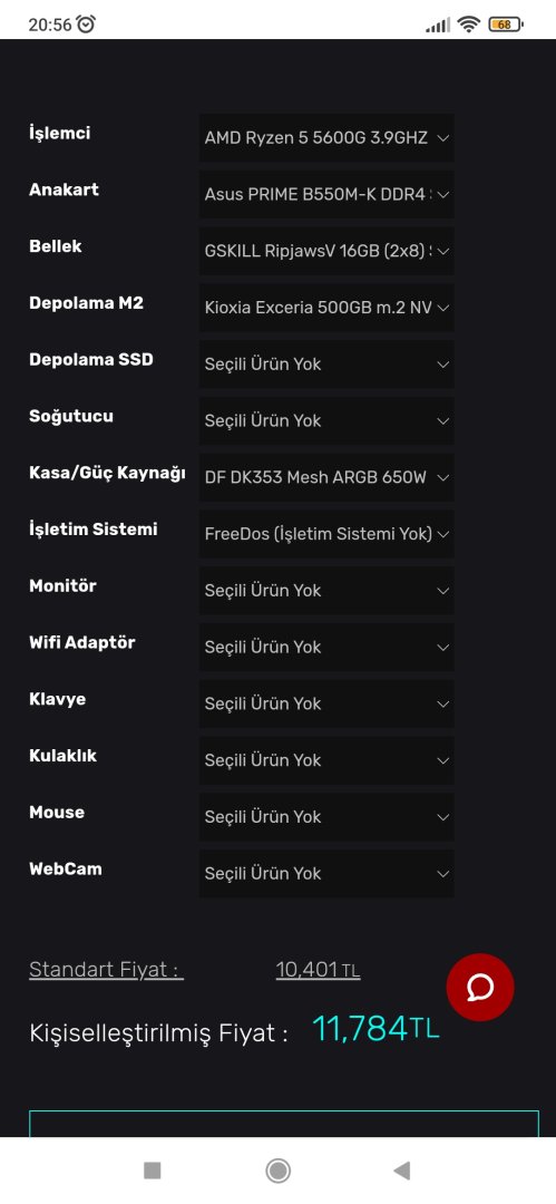 Ha ben değişmeyle felan hiç uğraşamam dersen,toplama sistem yaparız hiç bir parçayı değişmeden, 12.500₺ civarında, tüm parçaları kaliteli bir sistem toplayabiliriz.