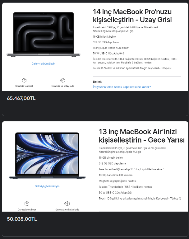 Hangi iş için kullanıcağınıza bağlı hocamBu iki model arasındayım. MacBook Air'da fan bulunmaması sıkıntı yaratır mı? Aradaki 15K'lık fiyat farkına değer mi?
