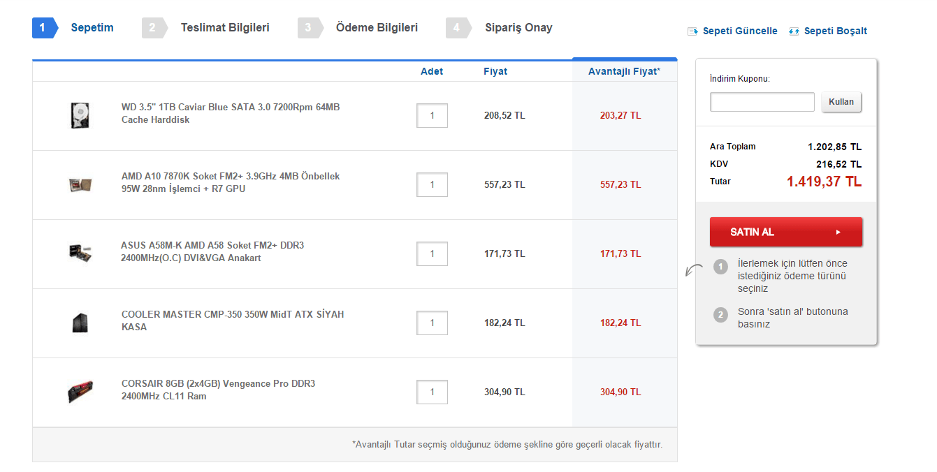 ( Şuan Bimeks'in sitesinde bir sıkıntı var galiba. Ekran kartının fiyatı 469 TL olması lazım. )