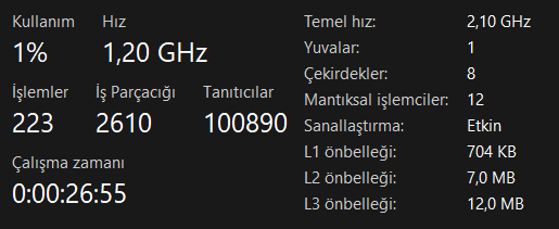 Merhaba, işlemcim 13th gen Intel(R) Core(tm) i5-13420h. Intel'in kendi sitesinde 3.40 ve 4.60 GHz olarak gözükmektedir. Fakat ayarlar kısmında 2.10 GHz olarak gözüküyor. Bunu nasıl düzeltebilirim?
