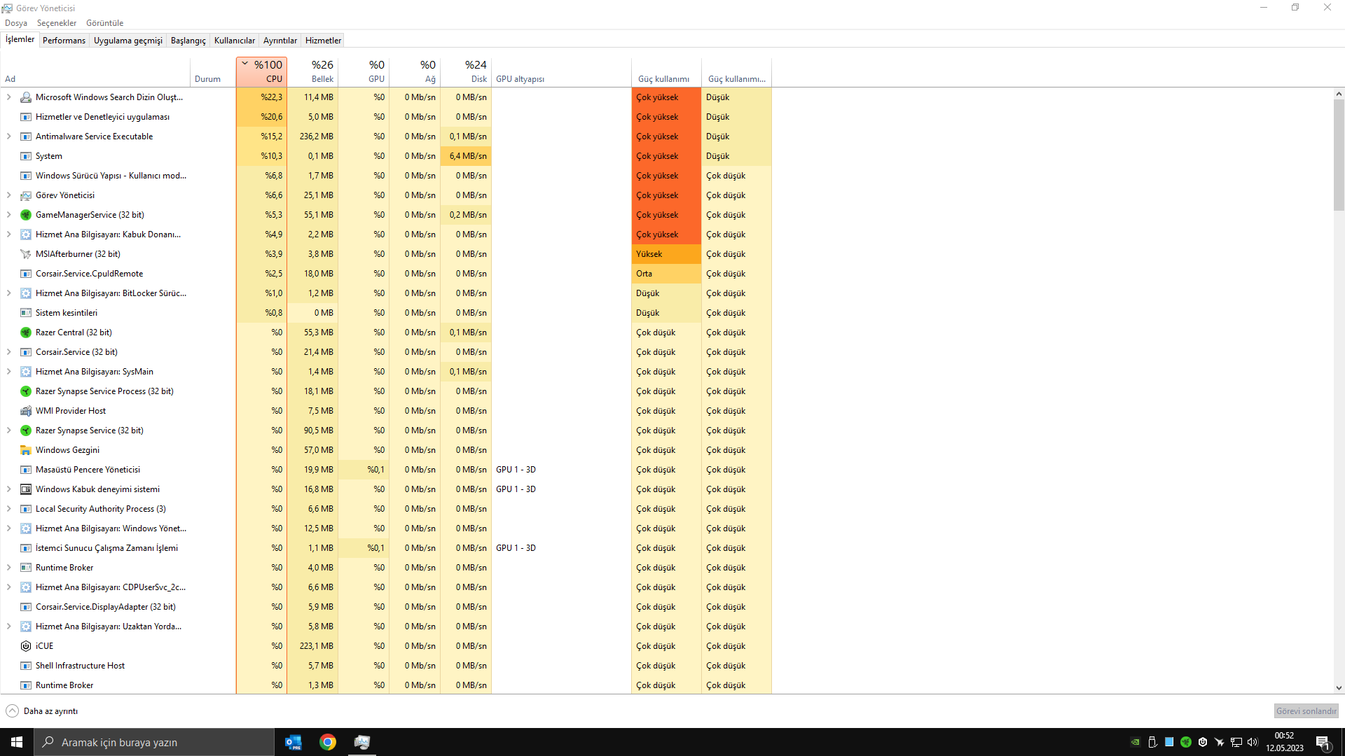 Arkadaşlar merhaba, yaklaşık 2 haftadır CPU %100 kullanım gösteriyor. Toplasan Total'de o kadar bile etmiyor muhtemelen "Görev Yöneticisi" sorunlu. Fakat CPU fan tam devirde dönüyor, sistem fanlarından anlıyorum hiç yavaşlamıyor hep yüksek RPM'deler. Sizce problem neyde olabilir? BIOS son Update yaptım. Driverlar da anakart sitesinden indirdim her şey güncel.