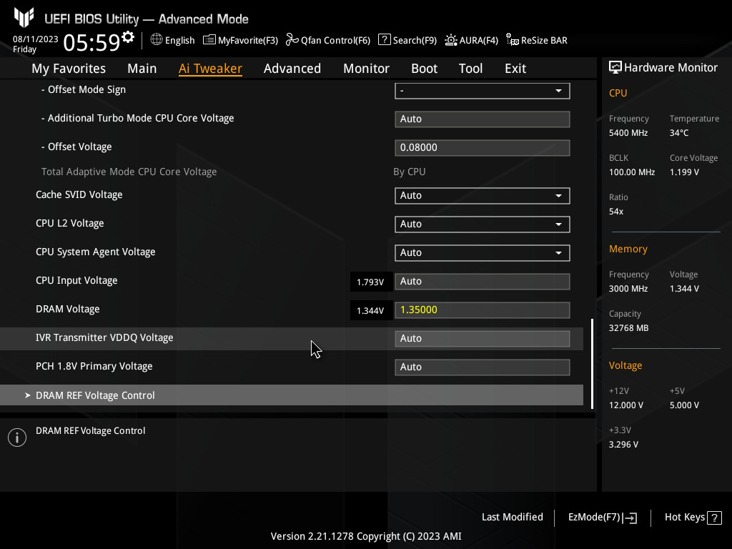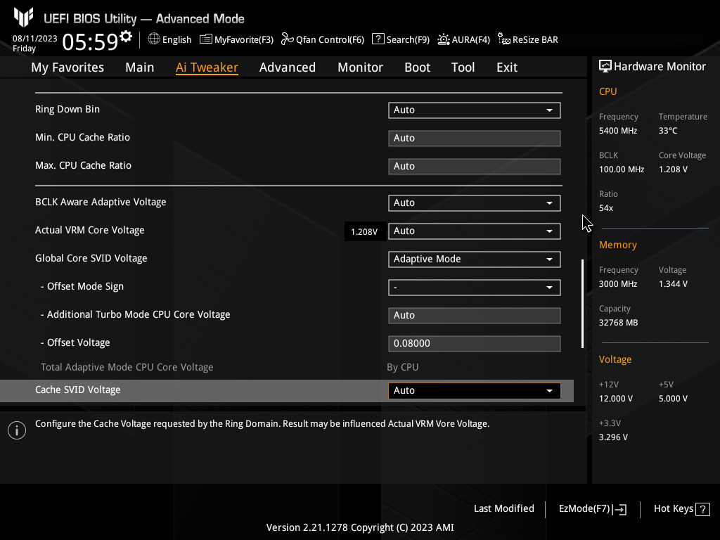Global core svid voltage "Adaptive" "offset Mode Sign" "-" Offset voltage" "0.08000"