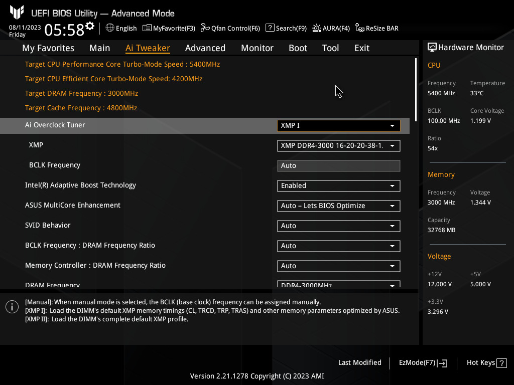 X.M.P Enabled (Yani XMP I seçili).