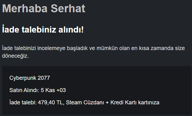 Steam bile bunun farkında, açıklama yaptığınızda esnek davranıyorlar. 25 gün geçmiş bir oyunu hiç oynamadığım için iade edebilmiştim. Ayrıca üç buçuk-dört saat geçirdiğim başka bir oyunu daha iade etmiştim. 25 gün geçen oyunla ilgili açıklamaya 'kesinlikle oynayacağım diye plan yapmıştım fakat planlarım değişti ve hiç oyunu oynamayacağım, beni lütfen kırmayın' diyerek rica etmiş iade yapmıştım.