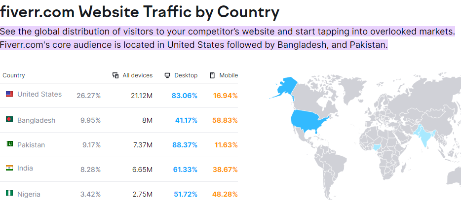 Fiverr işi yaş iş. Tonlarca Hint arasında eziliyorsunuz. Denemekten zarar gelmez ama pek sonuç alınmayacağını düşünüyorum. Aktif olmanız da önemli. Aşağıda gördüğünüz gibi neredeyse sadece Amerikan müşteri bulabilirsiniz. Diğer ülkeler iş yapmak için orada. Amerika saatleri de Türkiye'ye ters düştüğü için saat 19:00'dan gece 1,2 arasına denk geliyor.Eki Görüntüle 2108278