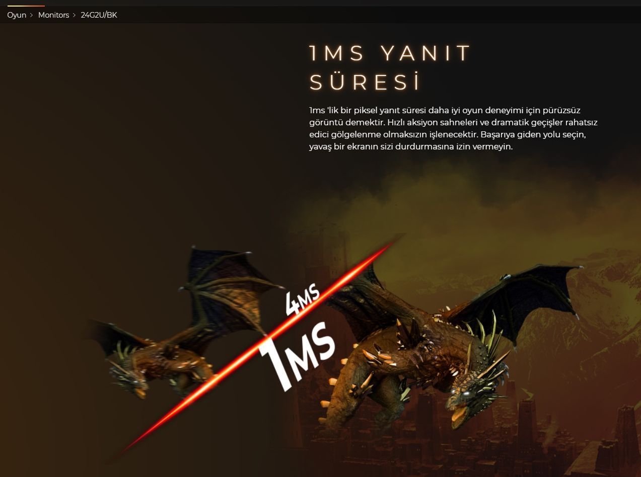Örnek bu IPS panel monitör'ün tipik ms değeri 4'tür. Kendi sitesinden bakabilirsiniz.