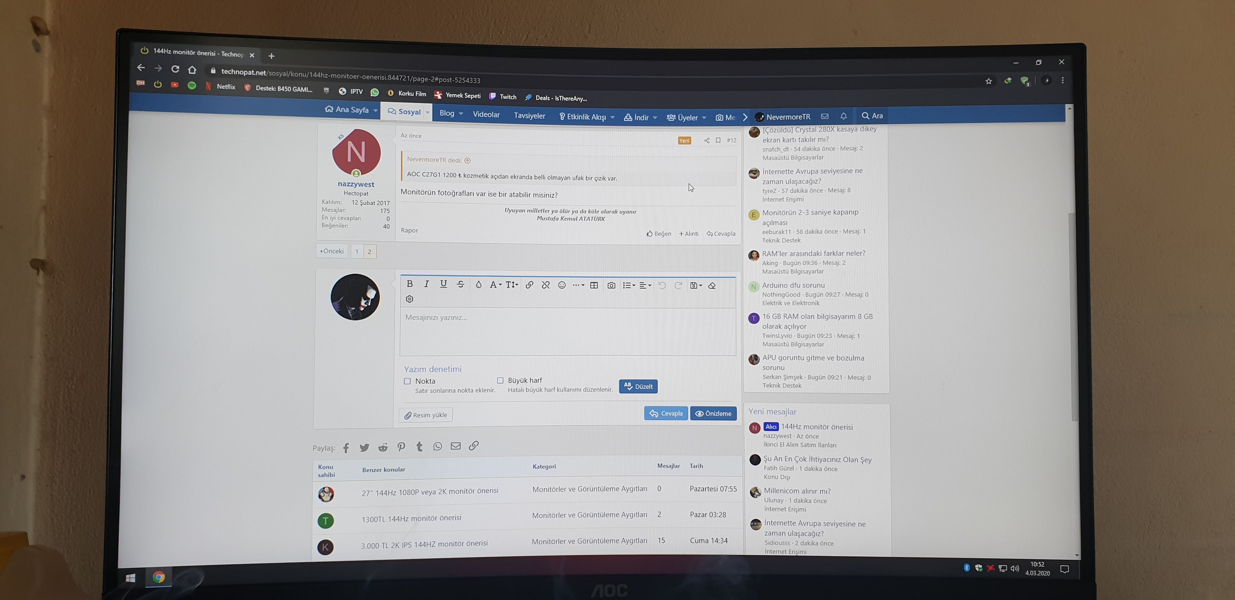 Alıcı 144Hz monitör önerisi