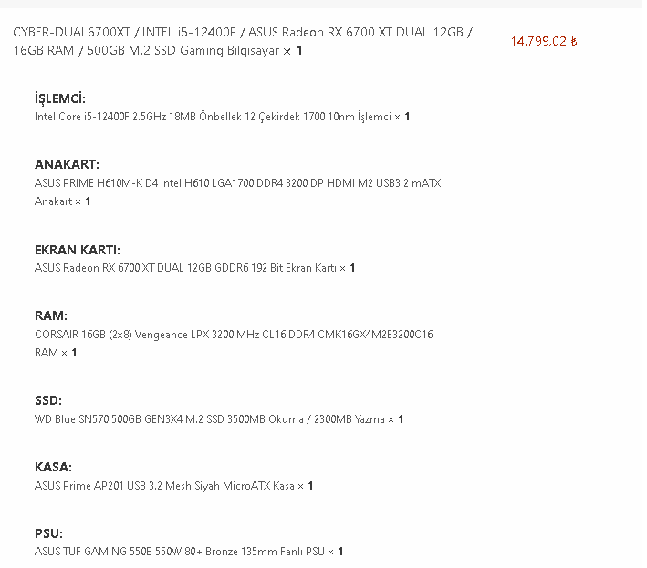 Hayırlı olsun hocam. Ben de 6700xt li bir sistem düşünüyorum. 5600 5600x li sistemler bakıyordum daha önce attığın. Neden bunu aldınız fiyatı bira daha uygun gözüküyor fakat 5600 ler mi daha iyi 12400f mi bir de o h610m nasıldır bilgi verebilir misin ben de aynı sistemi alabilirim.