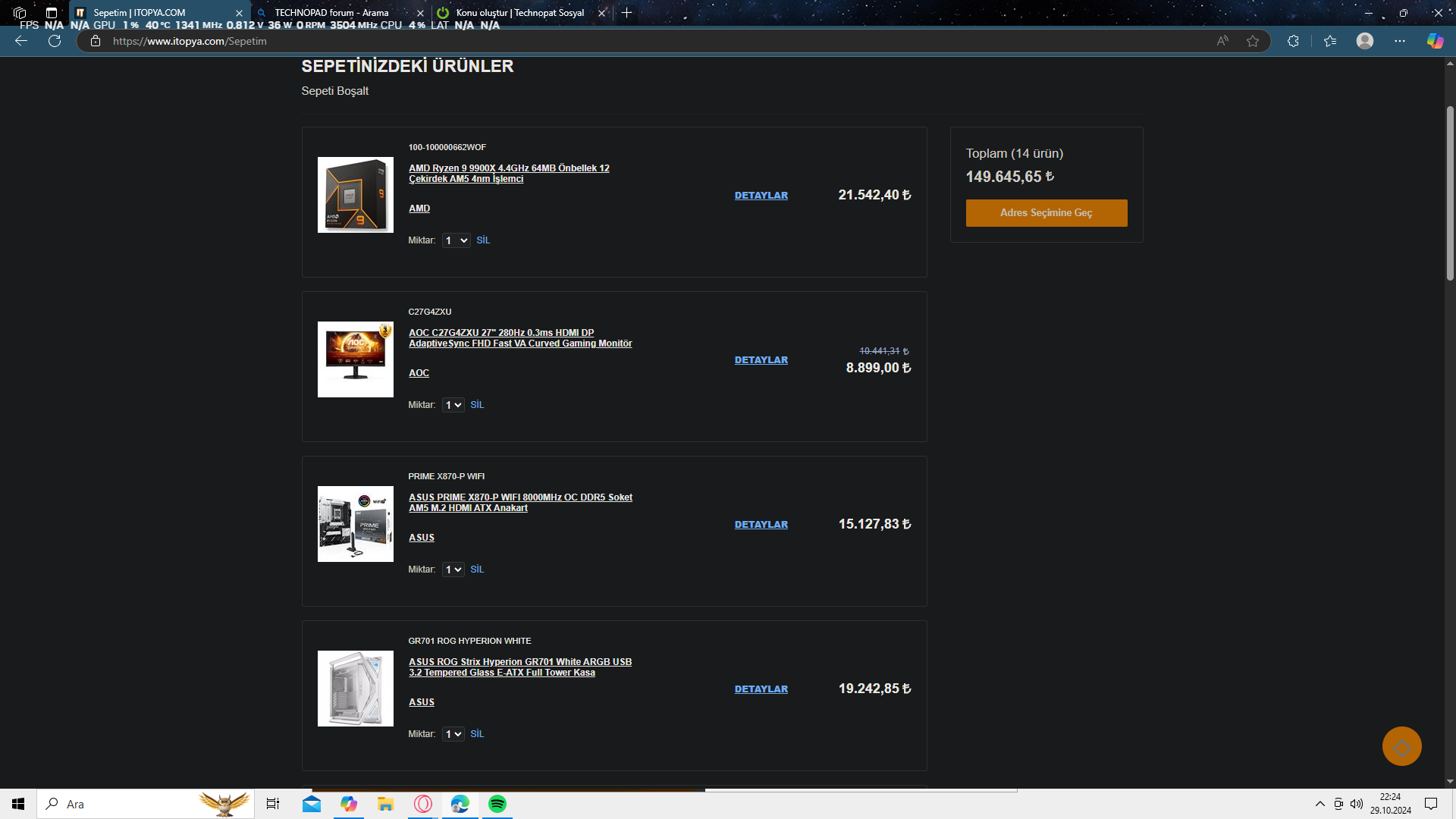 Dostlar 150k bütçem var böyle bir PC yaptım nasıl? RAM'lerin beyazı yoktu, ikinci PC bu olacak. Abimle falan aynı anda oynamak içindir vs. nasıl sizce? Eksigi artısı var mıdır eklememi önerdiginiz?