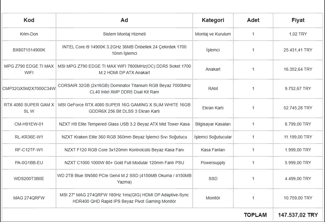 İşlemci konusunda bende ısınma sorunlarını çok duydum ama Intel takıntım var o yüzden onu kullandım. SSD konusunda fikirlere açığım. KC3000 çok daha iyi duruyor. Sistemi alırken ayrı ayrı alacağım zaten ama İstanbul içi iyi bir kasa toplayan bir yer bulmam lazım kasa görseli için.