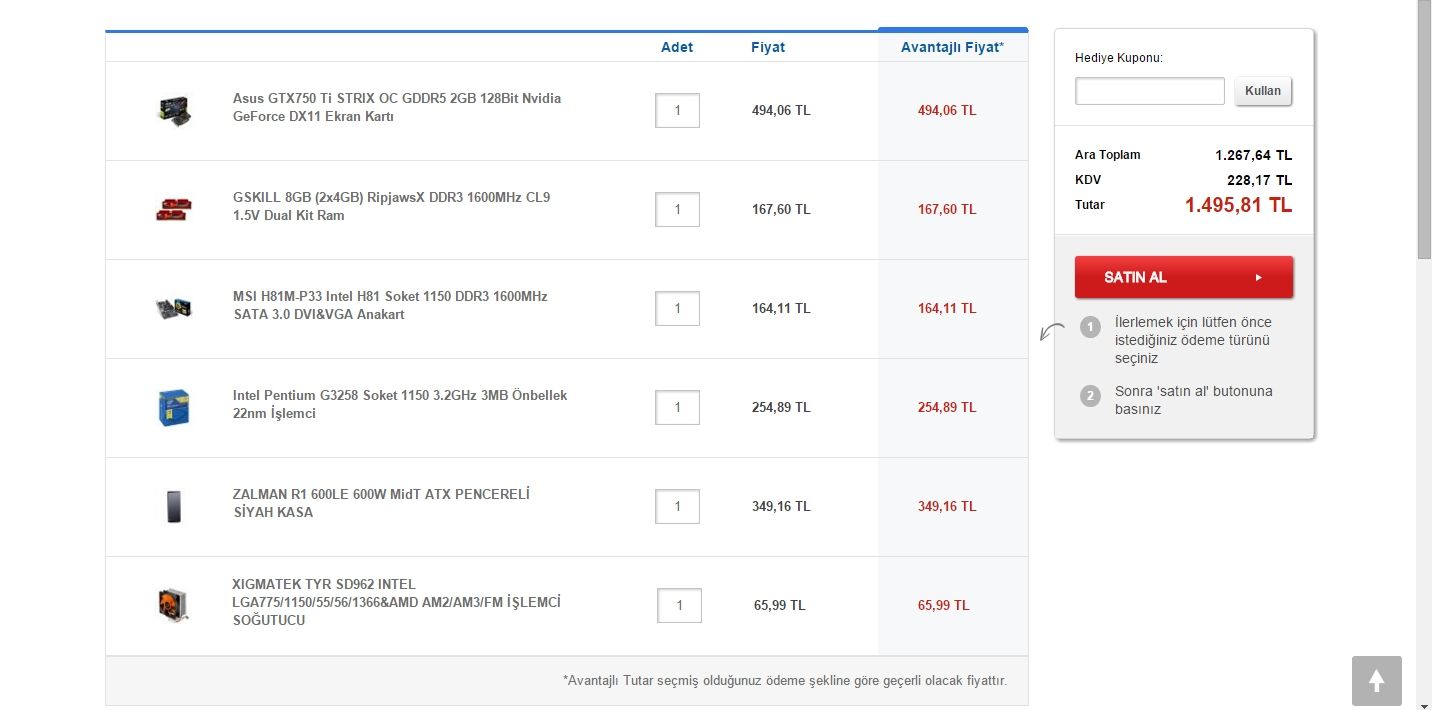 Selamlar, yakın bir zaman içinde bu bilgisayarı almak istiyorum. Sizce uygun mudur? Oyunlarda kaliteyi sevmem, Performansı severim haliyle low'da oynarım fakat çözünürlük yüksek olur. Bu tarzda bir bilgisayar topladım. Lütfen konu ile ilgili görüşlerinizi yazmayı ihmal etmeyin.