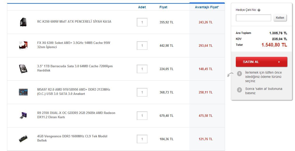 Orada bulunan Ağustos 2014 sisteminde orta seviye sistemler dikkatimi çekti. AMD 6300 olan