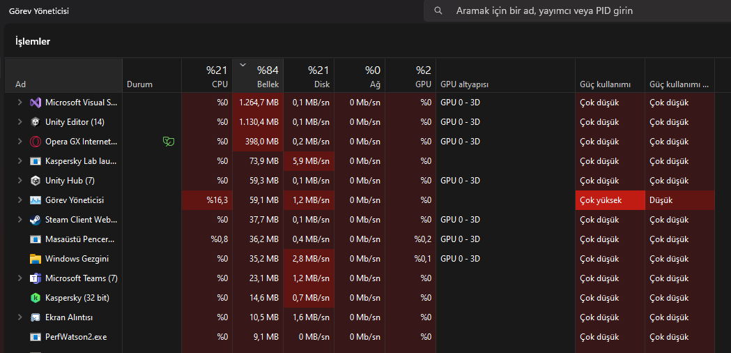 RAM'de en çok kullanılanların listesi, sadece 3 uygulama bu kadar RAM kullanıyorken 16 GB'lık kapasiteye bu kullanım normal midir, ne yapmam lazım?
