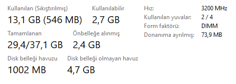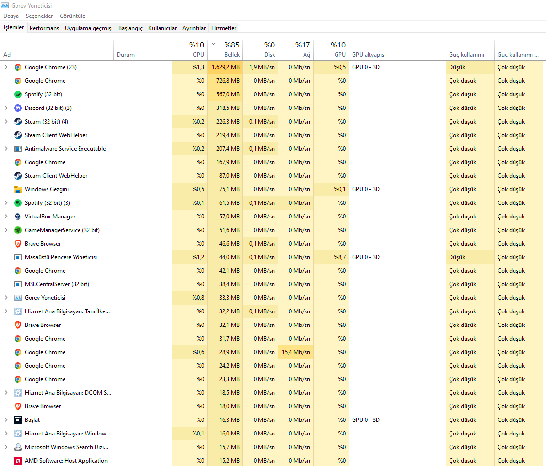 Bu kullanım normal midir? Bellek kullanımları toplam 3-4 GB kadar gözüküyor fakat 16GB RAM'in neredeyse tamamı kullanılıyor. Google Chrome'u kapatınca %65 seviyesini iniyor. Yine fazla gibi.