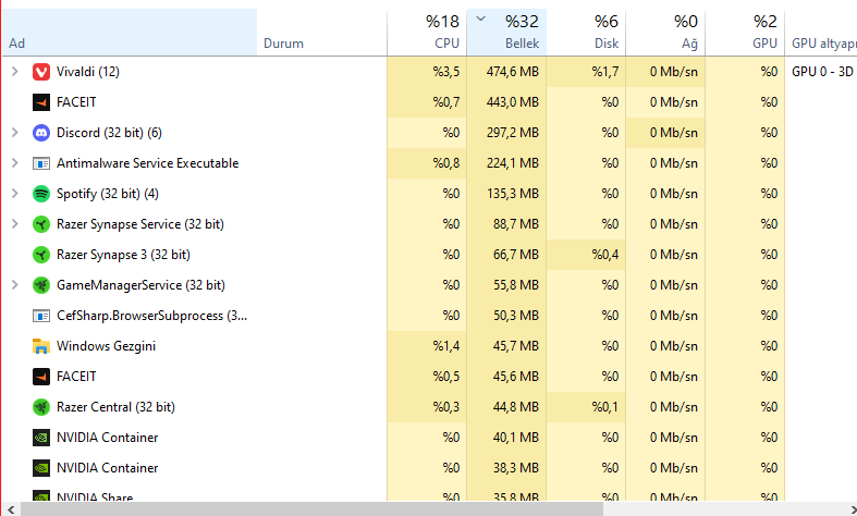 Sadece tarayıcı açık, 16 GB RAM'e sahibim. Değerler anormal mi?