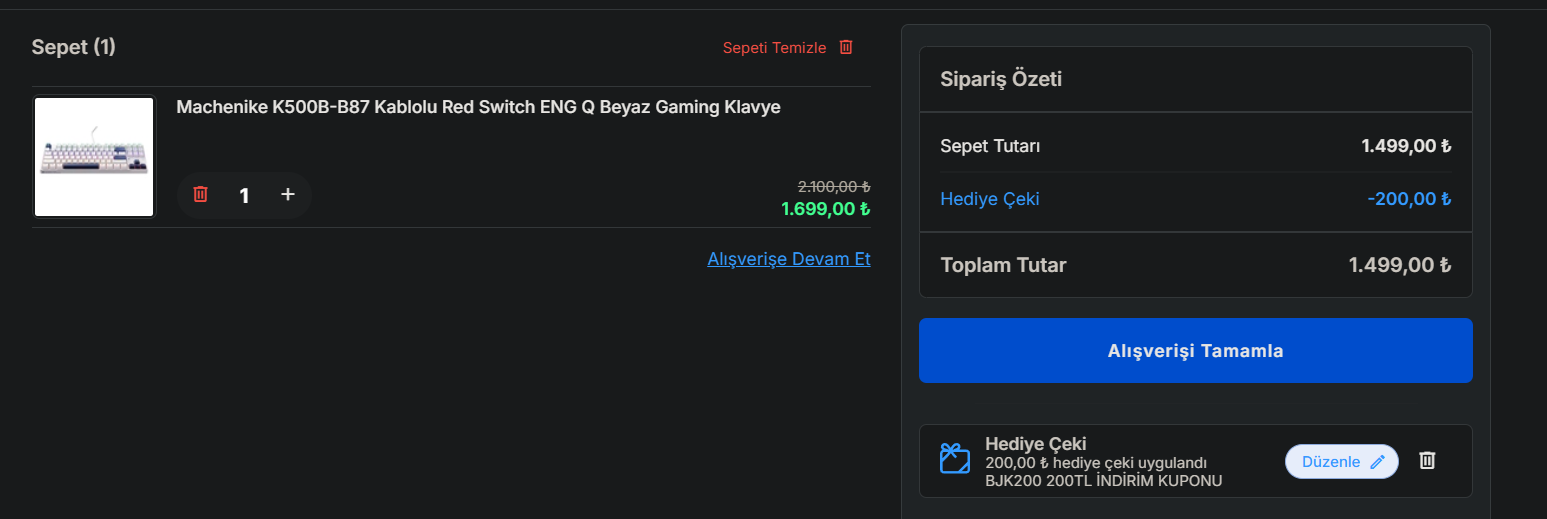 Gank sitesinde BJK200 kodu vardı sanırım, o kodla red switch olanı 1500 e geliyor.