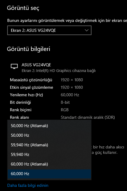 Başlıkta belirtiğin gibi bir sorun alıyorum. 9 yıllık bir laptopum var. İçinde Display Port kablo çıktı ama laptopta Display Port olmadığı için HDMI kablo ile bağladım monitörüm 165 Hz olmasına rağmen Max 60 Hz veriyor.