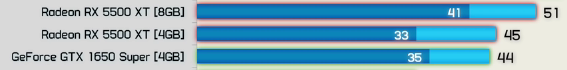 5500 XT sürücüleriyle RX 580 ve 590'dan daha güçlü bir kart şu anda. 6 GB olabilirmiş bu kart ama 8 GB çok da fazla değil. 4 GB modeli VRAM eksikliğini fazlasıyla hissediyor AAA oyunlarda.