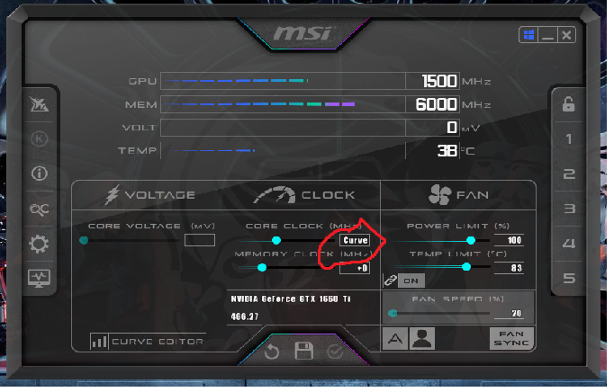 Önce 1. resimdeki işaretli curve yazan yere tıklayıp -75 yaz ve enterla. Daha sonra CTRL+F yap 2. resimdeki editör açılacak. Grafikte eğim olan noktadan itibaren sonrasındaki bütün noktaları 1850 MHz'ye çek ve kapat. Daha sonra soldaki ayarlar butonunundan Afterburner ayarlarına girip fan bölümüne geç. Kullanıcı ayarlarlı ayarlı kutusunu seçip 3. resimdeki fan ayarlarını gir. Uygula ve tamam dedikten sonra. Afterburner'da kaydet butonuna tıklayıp 1-2-3-4-5 herhangi birine kaydet. Sonra da kaydettiğin profile tıklayıp uygula butonuna bas Afterburner'ın. Bu kadar. Sonrasında fan ayarlarını kendine göre değiştirebilirsin.