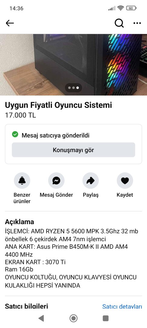 zeka küpü dolandırıcı hahahhaAdam resmen dolandırmaya çalışmış. 3070 ti diyorsa 3070 ti olmak zorunda. Zaten belli her şeyi yanında verip bu kadar ucuz satmasından.