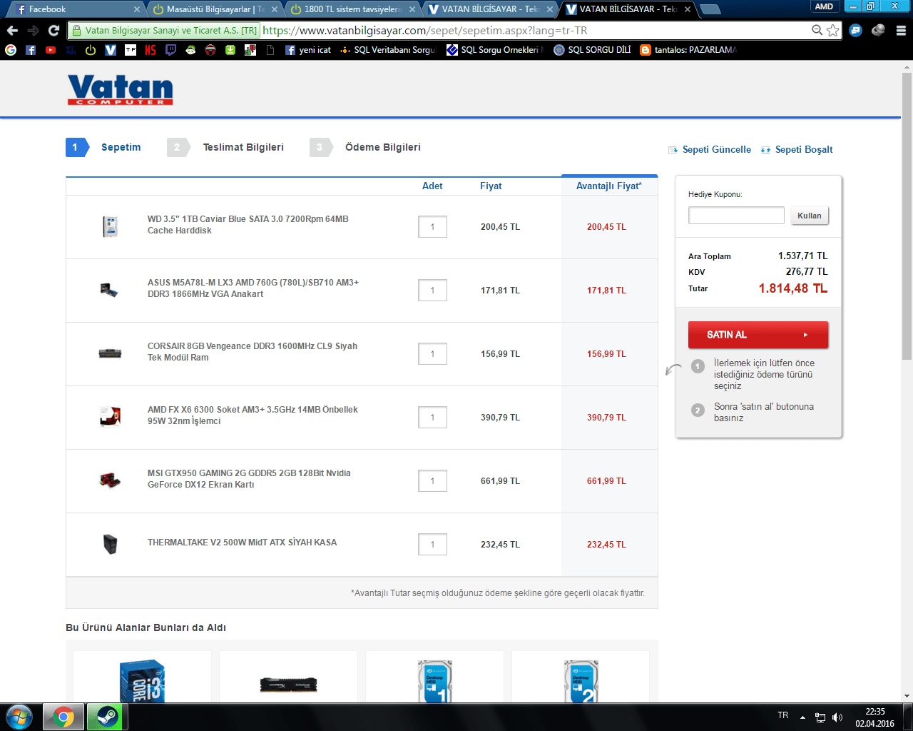 Bizim önerdiğimiz sistemler daha iyi. Sinerji'de guvenilirdir. Yok ben Vatan' dan alacağım diyorsan attığın sistemden GTX 950'yi çıkar ve R7 370 ekle. Hiç yoktan AMD kombinasyonu yapmış olursun.