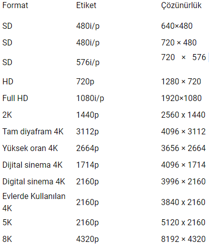 1K - 2K - 4K - 8K çözünürlükleri nedir?