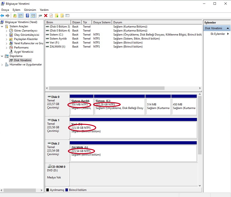 Hocam disk bölümleriniz görülüyor ama dosya sitemi görünmüyor. Sanki bölümleme yapılmış ama hiç formatlanmamış gibi.
