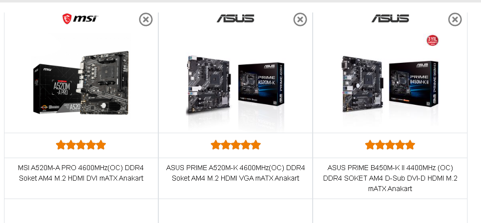Anakartı 450 değil 550 seçtim arada çok fiyat farkı varmışa benzemiyordu.