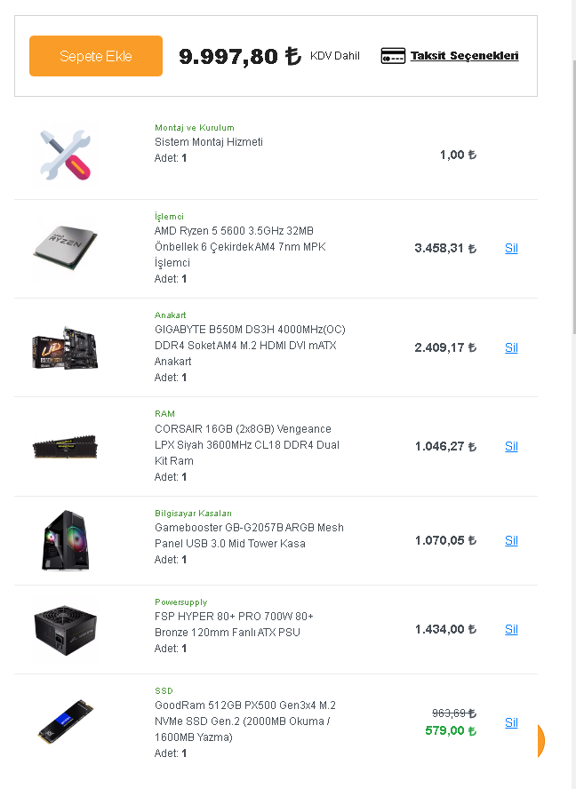 Hocam sırf buradan 900 TL zarardasın işlemci 500 TL daha ucuza bulduk anakartın aynısı 400 TL daha ucuza geliyor.