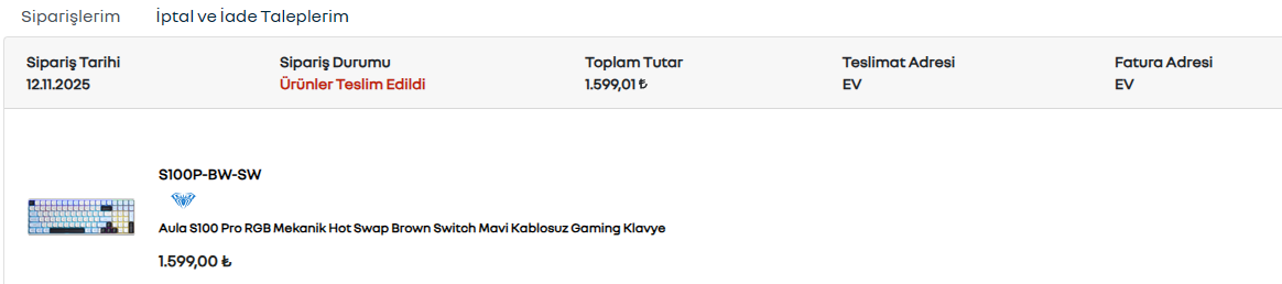 Teşekkürler hocamBen aldım iade ettim. Brown switch olan space çift tıklama yapıyordu. Uygulaması da yetersiz.