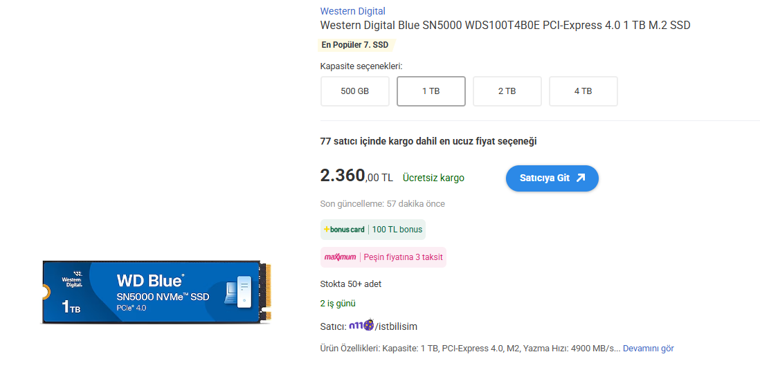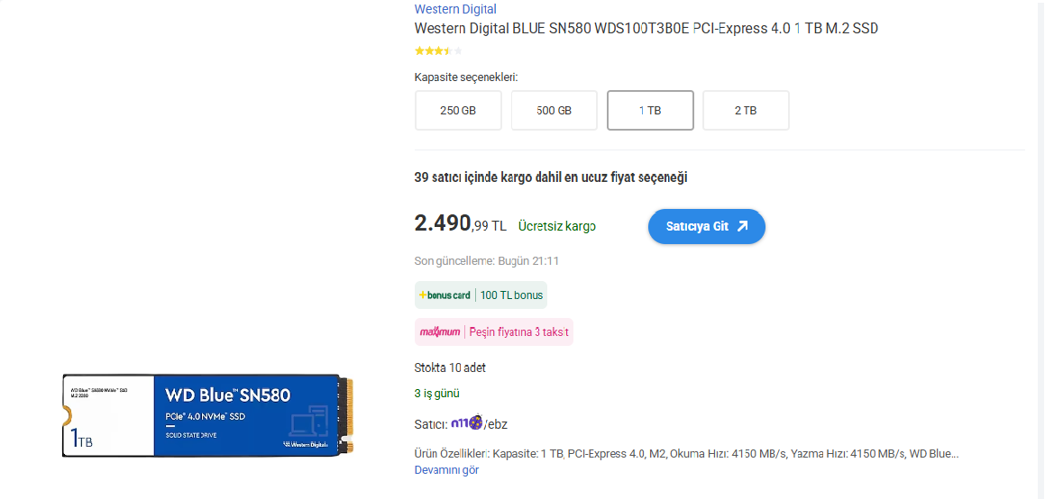 Merhaba, maksimum 2500 TL bütçem var 3 SSD arasından hangisini almalıyım? Hard diski depolama olarak kullanacağim. Resim, video, film.