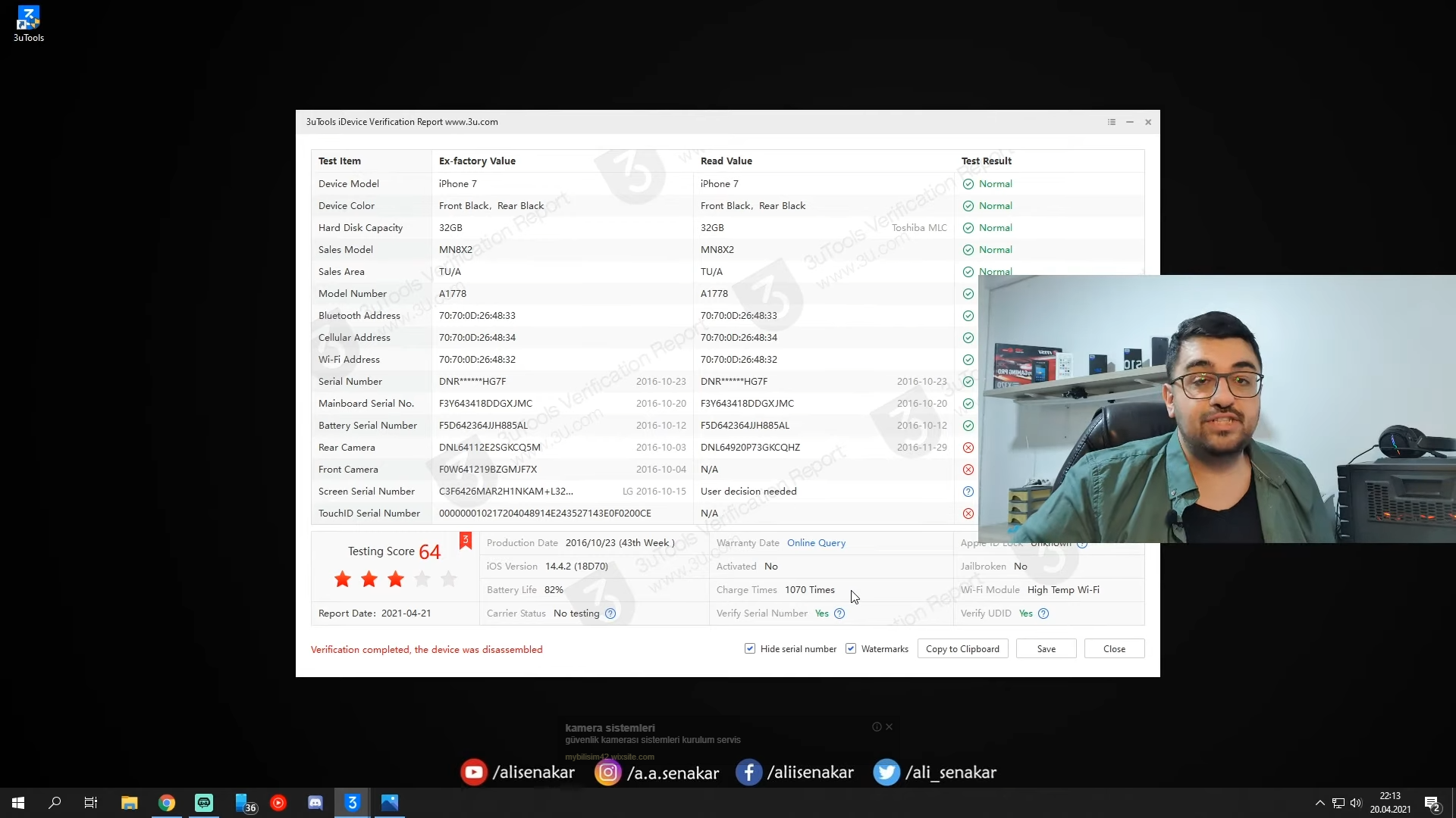 PC'den baktım kameralar değişmiş gözüküyor bir de parmak izi. Batarya sağlığı 89 diyor ama telefonda 90 gözüküyor. Uygulamada sorun olabilir mi? Bir de kendi şarj aletiyle PC'ye bağlamadım TTEC bir şarj aletiyle bağladım ondan da öyle gözüküyor olabilir mi?