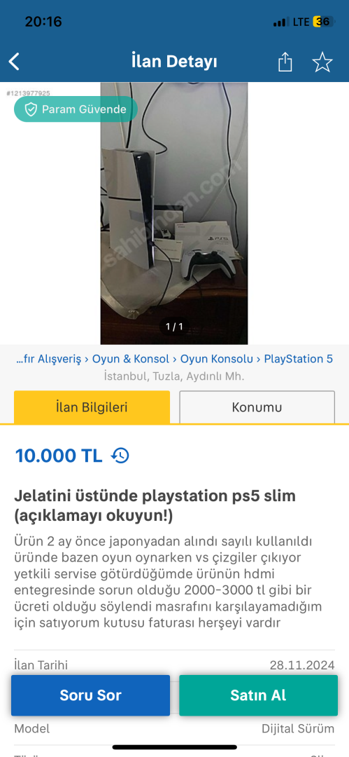 Şehir olarak uzağım maalesef. Param güvende ile almayı düşünüyorum.Çok ucuz geldi bana. Alırken deneme şansınız var mı?
