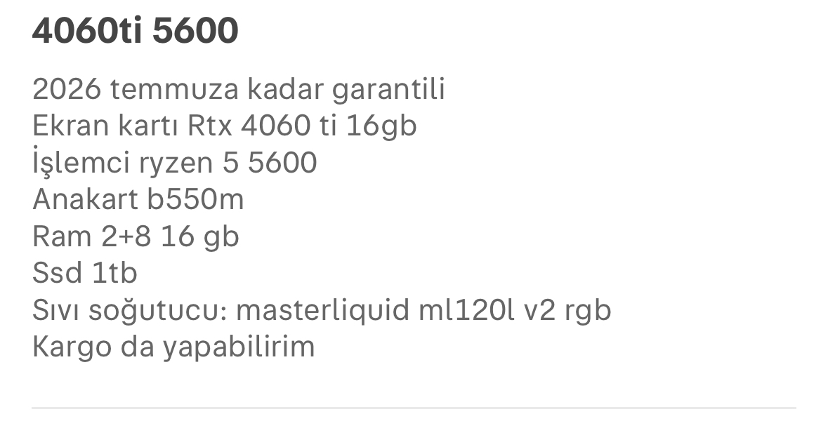 Merhaba arkadaşlar, 30.000 TL'ye 4060 Ti Ryzen 5600 alınır mı?