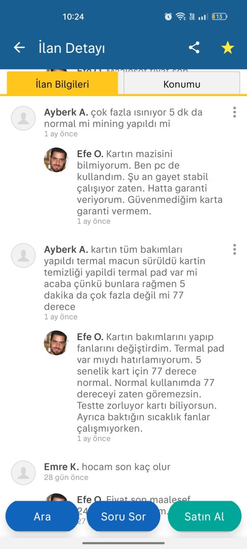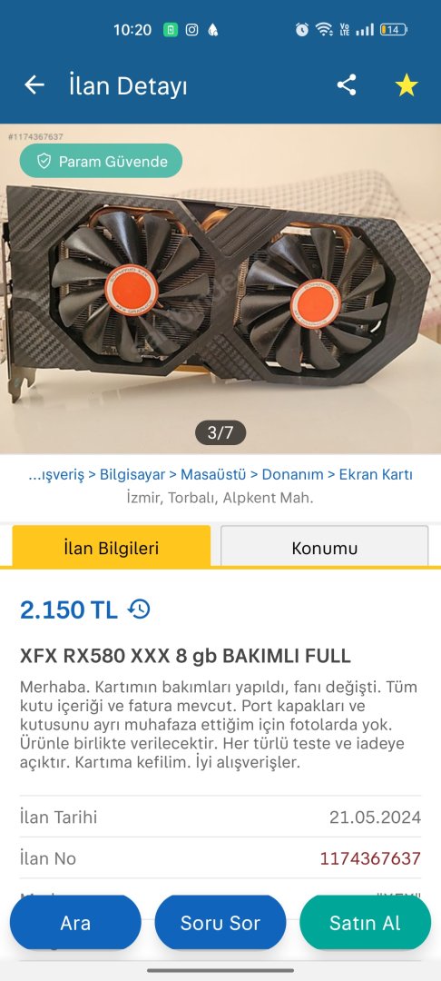 Merhaba RX 580 almak istiyorum. Ben sarı sitede gezerken bir tane buldum bütçeme uygun XFX RX 580 fakat içi açılmış ama sadece bakım yapılmış yani termal macun sürülmüş ve fanları değişmiş. Sıcaklık 77 derece o biraz dikkatimi çekti. Satıcıya sordum satıcı bu kart için normal dedi. Eski olduğu için ve fanlar o sıcaklık da çalışmadığı için o kadar sıcak %100 performansini kullanmadığı halde diyor. Satıcı ile konuştum biraz fotoğraflarını koyuyorum. Sizce alınır mı? Alınır ise bugün almaya gideceğim. Test edip alacagim hangi testleri yapmalıyım? Bunu da soylerseniz sevinirim.