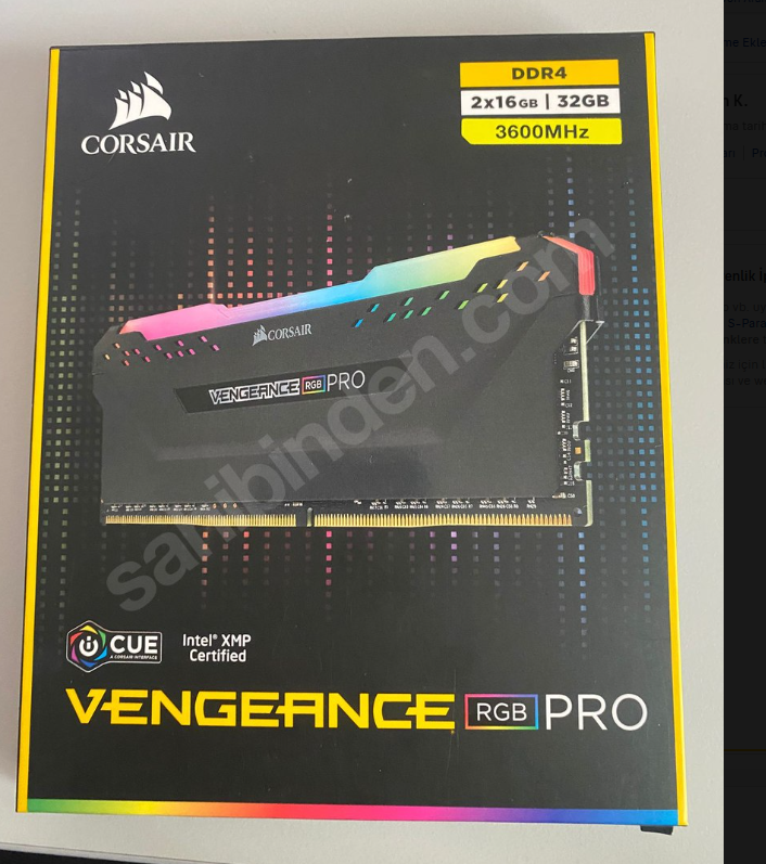 RAM: Corsair Vengeance RGB Pro DDR4 RAM 32 GB (2x16 GB) 3600MHz CL18 RAM bellek (cMW32GX4M2Z3600C18)