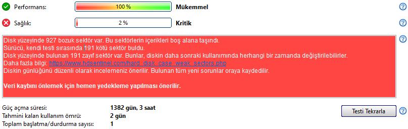 HDD sağlığım %2. ne yapmam gerek? Veya sökmezsem ne gibi zararları olur?