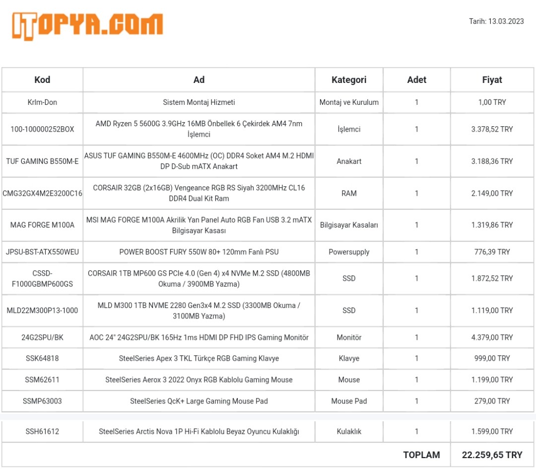 Hocam arkadaş çoktan sistemi almış ya.... 5600G APU sistem almışlar. Yoksa öneriler güzel.