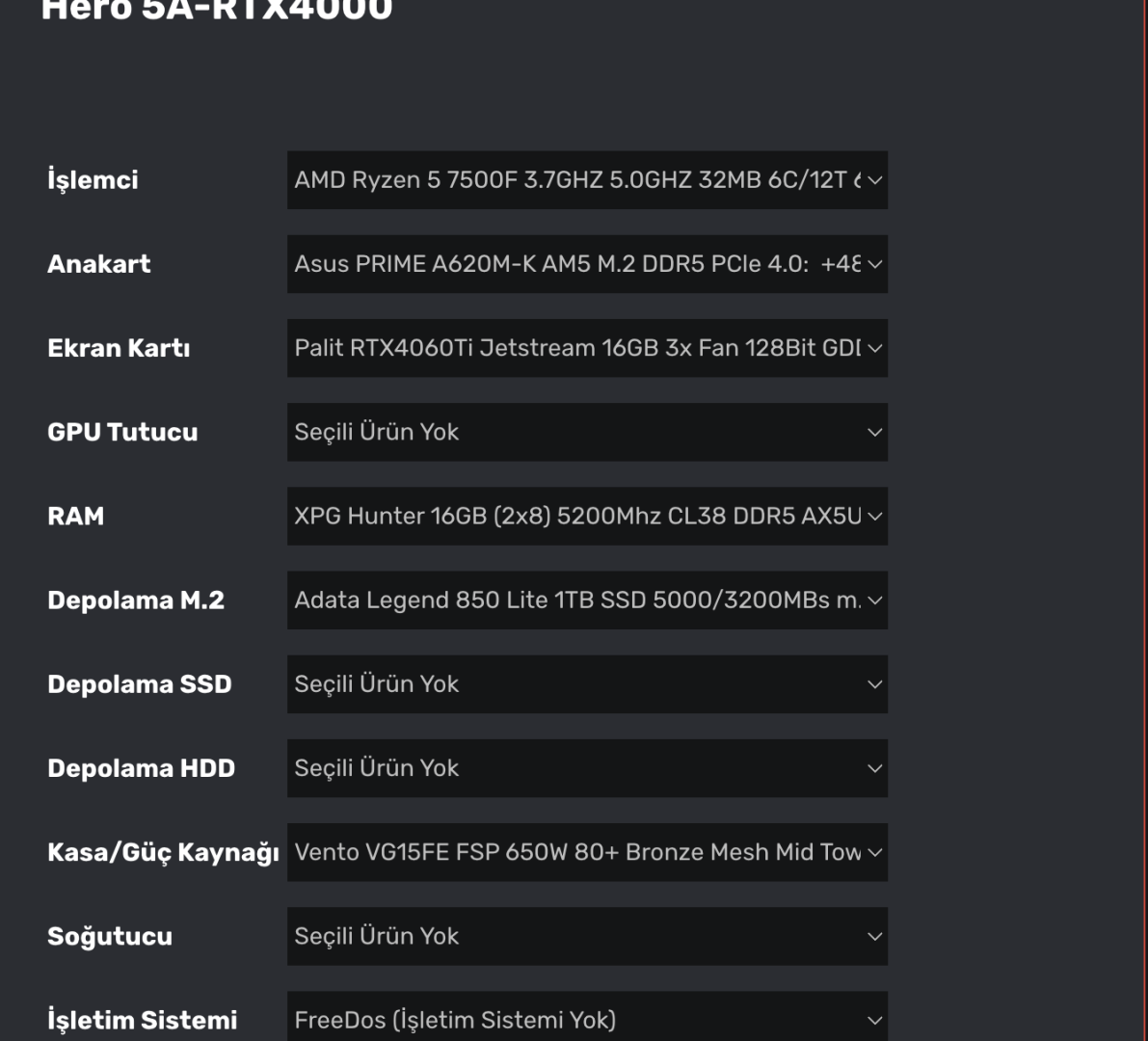 2K daha çık 4070'li al. Değmez böyle. 28k falan oluyor benim dediğim.