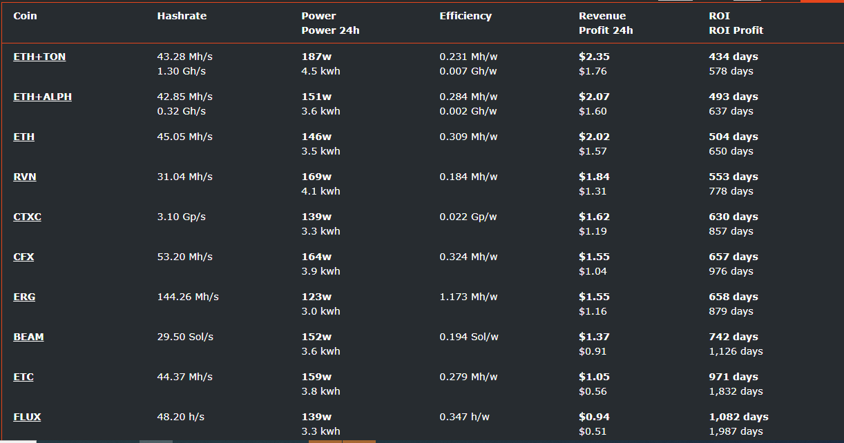 Dual mining öncesiydi o durumlar hocam. Buyurun tüketim oranı ve kazanç tablosu.