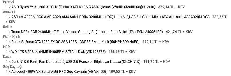 Şöyle bir şey uygun mu ? Tam fiyatı 2515 TL.